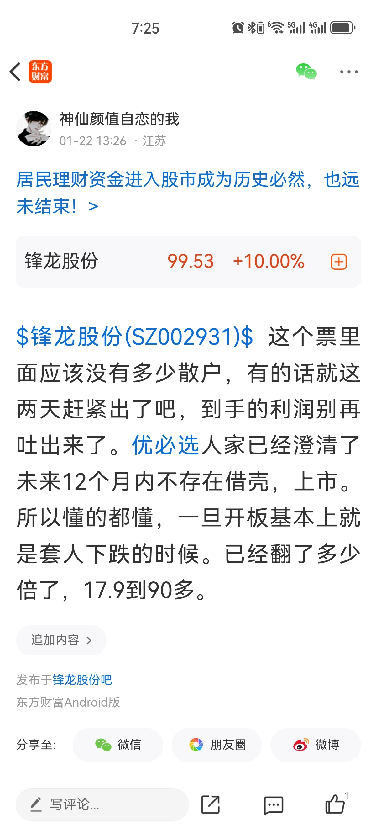 $锋龙股份(SZ002931)$ 22号我发帖子提醒的吧。23号少,爷,们肯定是提前知道消息跑了。不知道又有多少普通散户挂山顶上了。都这么高了怎么会还有那么多胆子大的敢接飞刀的。
