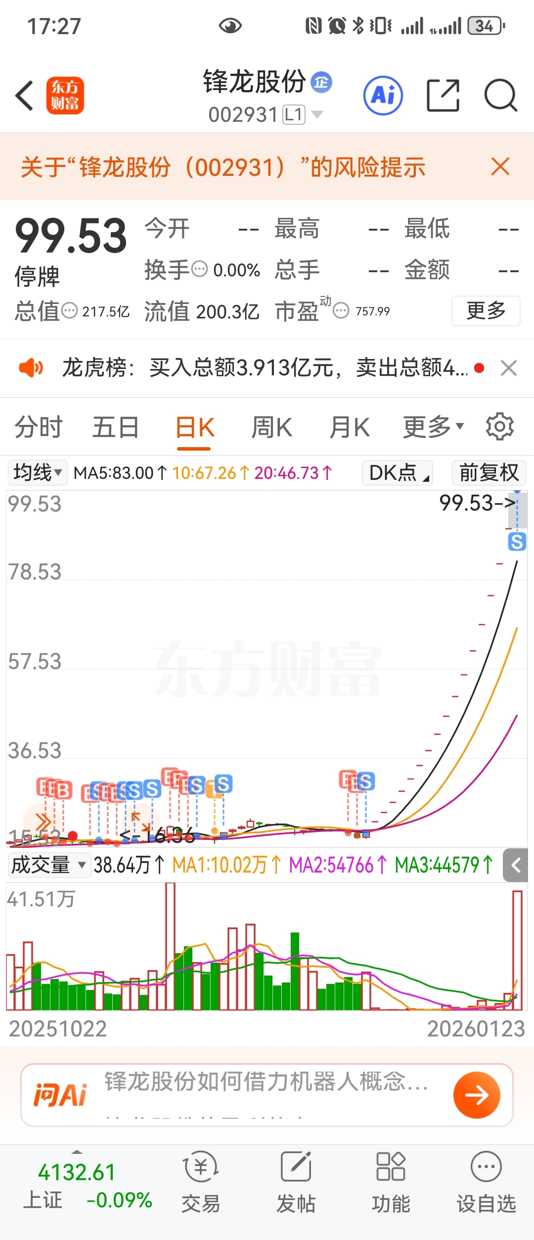 $锋龙股份(SZ002931)$ 上周五开板清仓是对还是错……