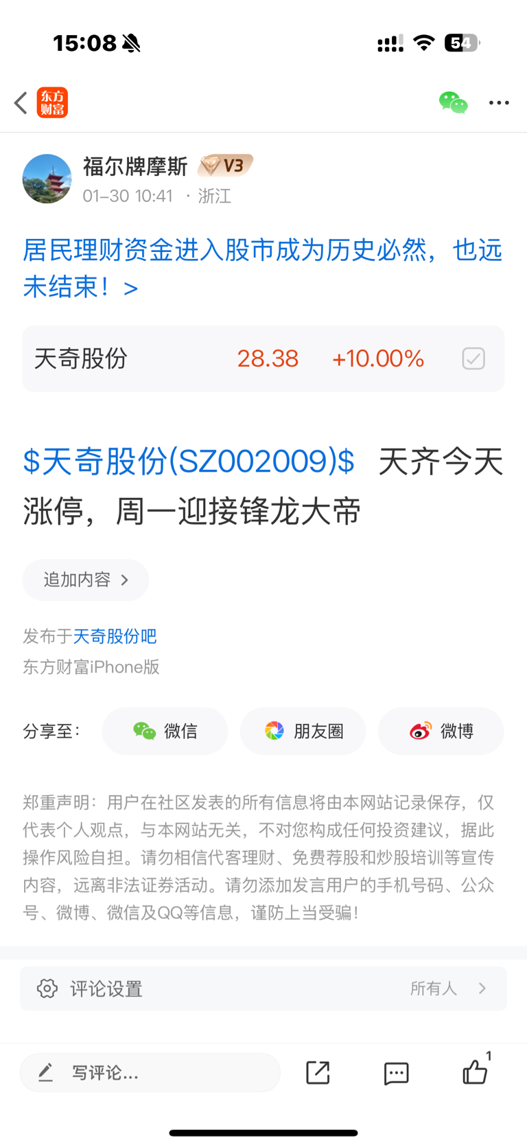 本人上午就预测了今天天奇要涨停,锋龙下周接着奏乐接着舞