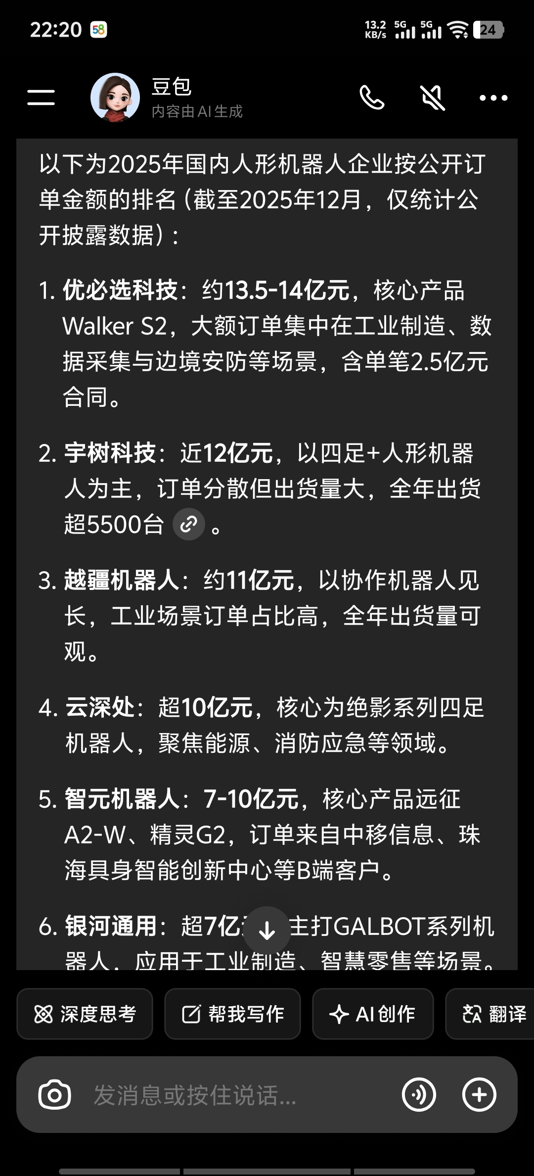 $锋龙股份(SZ002931)$ 2025优必选订单总金额排名第一