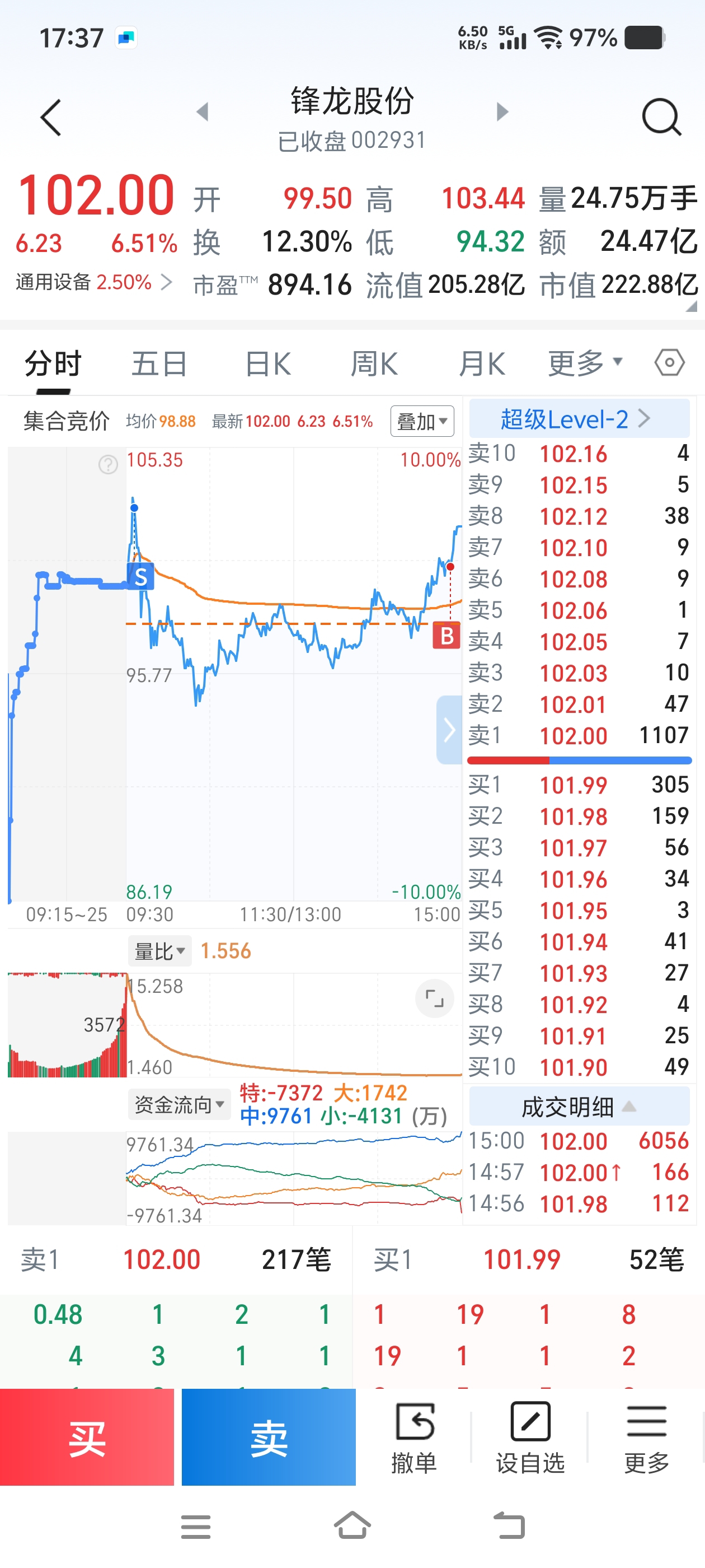 $锋龙股份(SZ002931)$ 龙哥,我就是个打工仔,赚点零花钱,明天赚个100就撤退