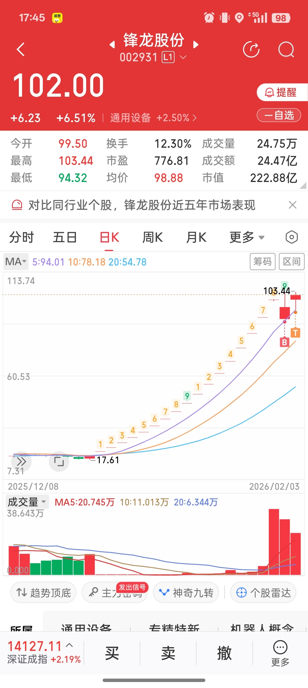 散户最大的风险是畏高,锋龙昨天复牌其分时强承接超出预期,分时倒V洗盘,清洗停牌前