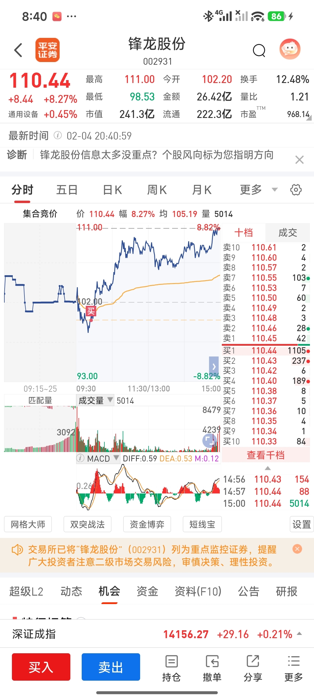 $锋龙股份(SZ002931)$ 我今天水下买的十个点明天会不会跌停开,不跌停就完美了