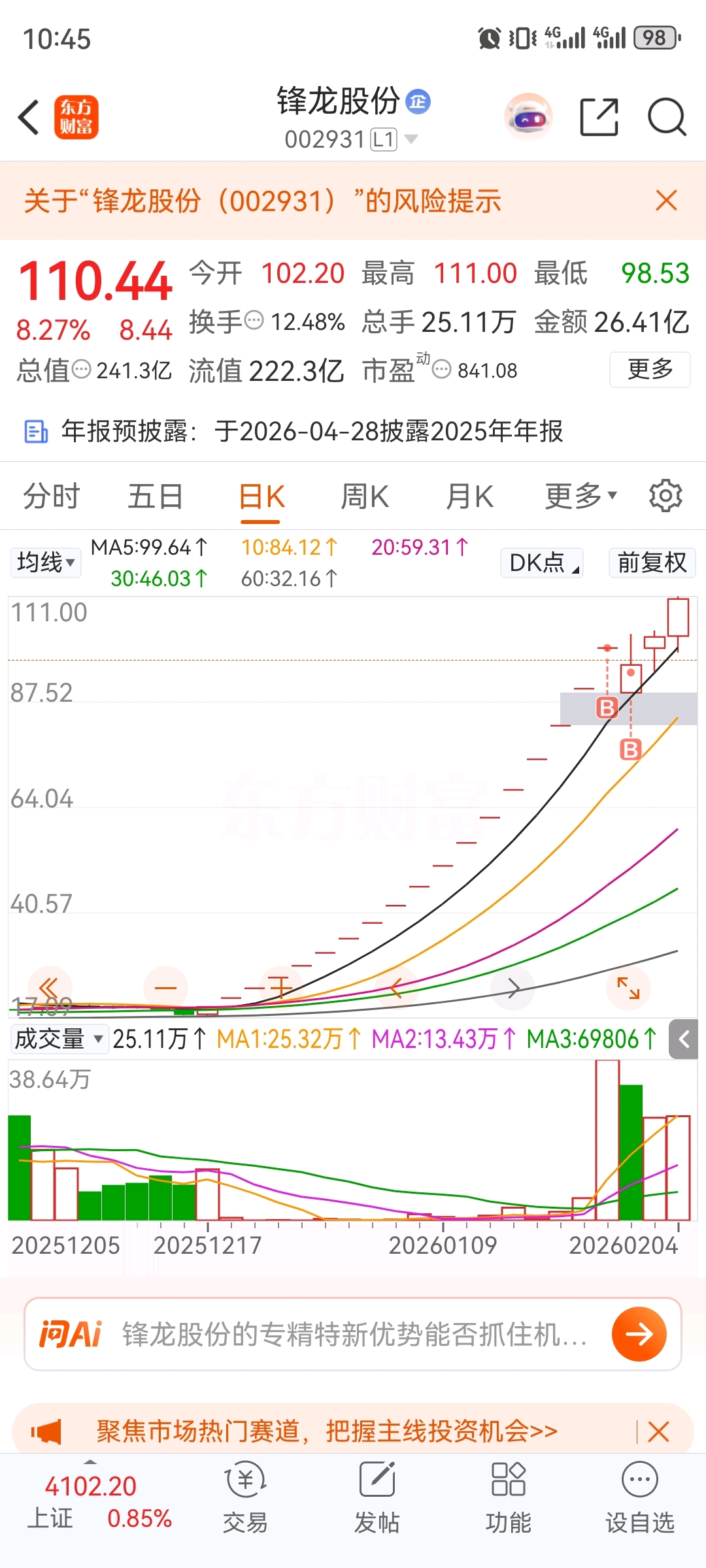 温馨提示: 1.根据《证券法》规定,禁止编造、传播虚假信息或者误导性信息,扰乱证券市场;2.用户在本社区发表的所有资料、言论等仅代表个人观点,与本网站立场无关,不对您构成任何投资建议。用户应基于自己的独立判断,自行决定证券投资并承担相应风险。《东方财富社区管理规定》