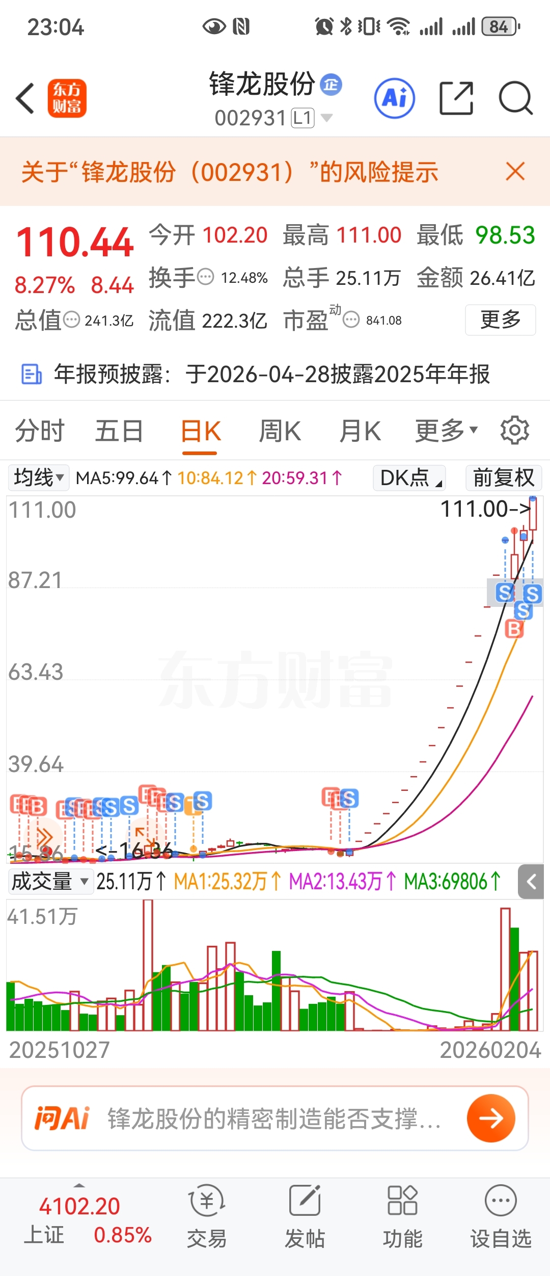 $锋龙股份(SZ002931)$ 见证了降龙十八涨,富贵险中求也体验了,清仓过年,就此别过,感谢疯龙!