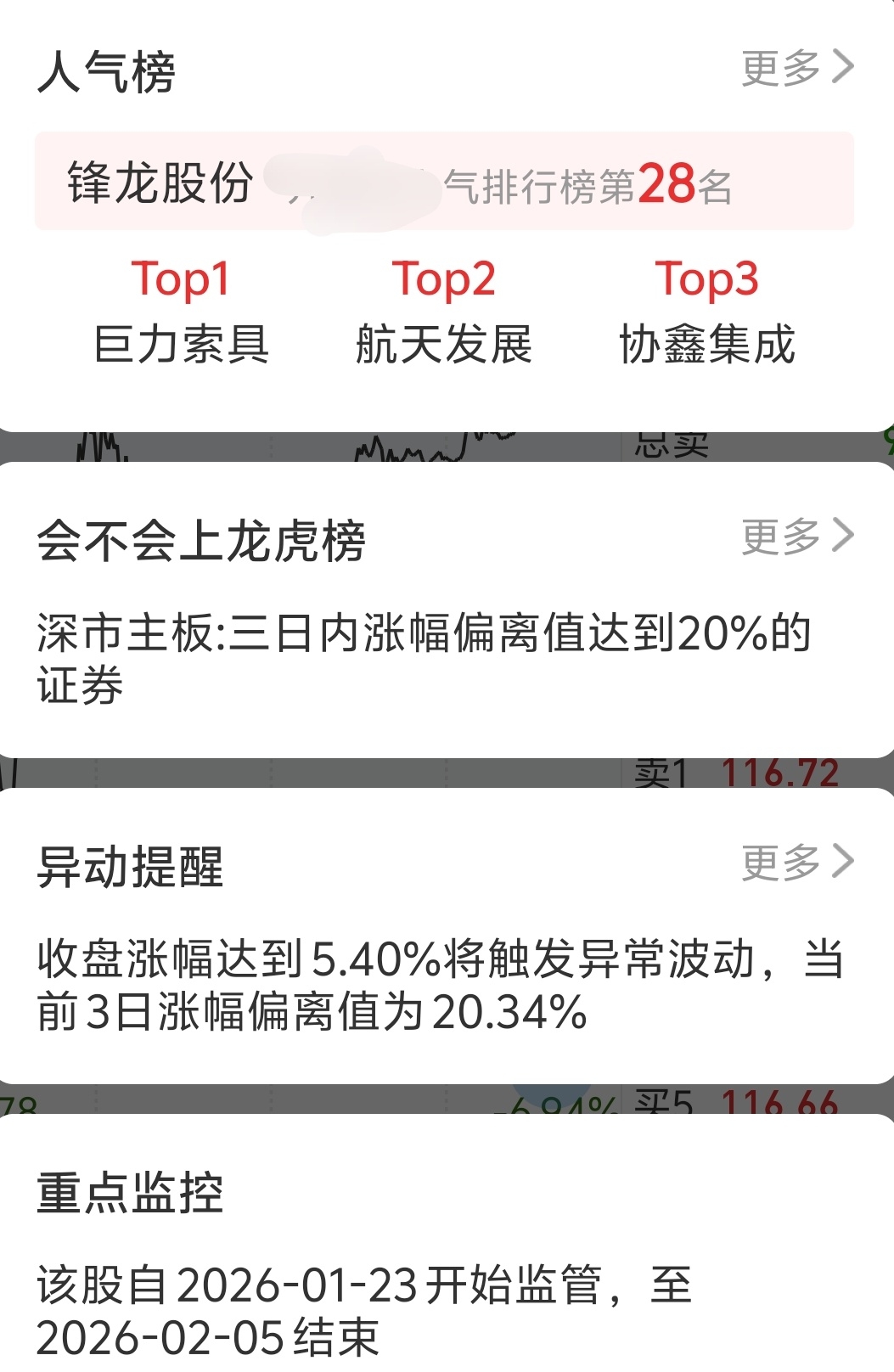 $锋龙股份(SZ002931)$ 别冲了,又要进监管了