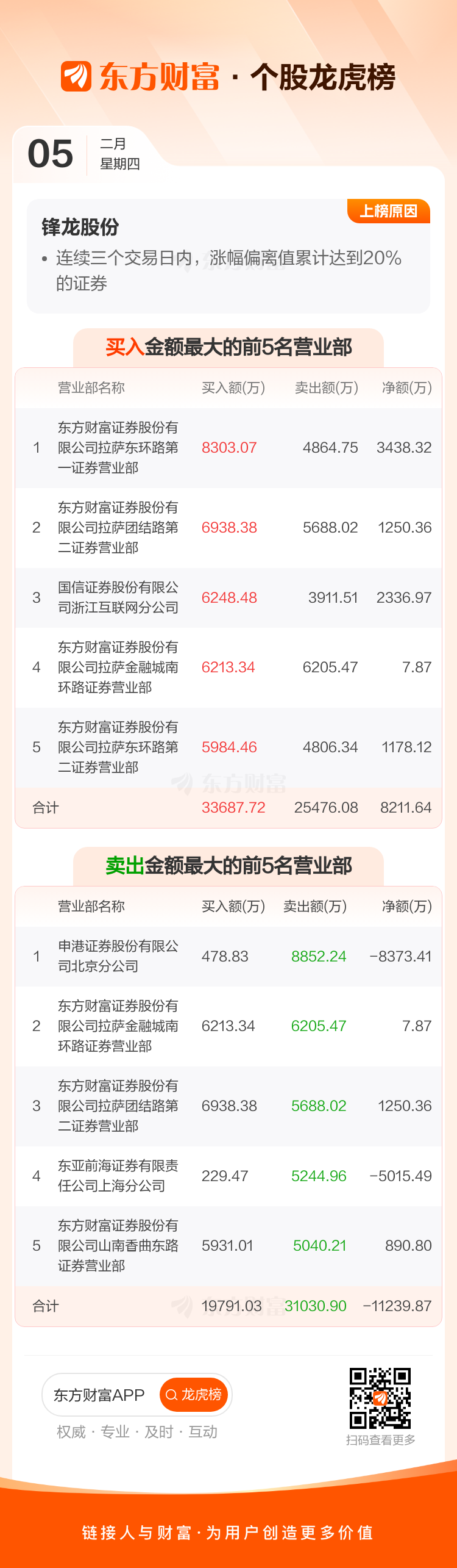锋龙股份(002931)龙虎榜数据(02-05)
