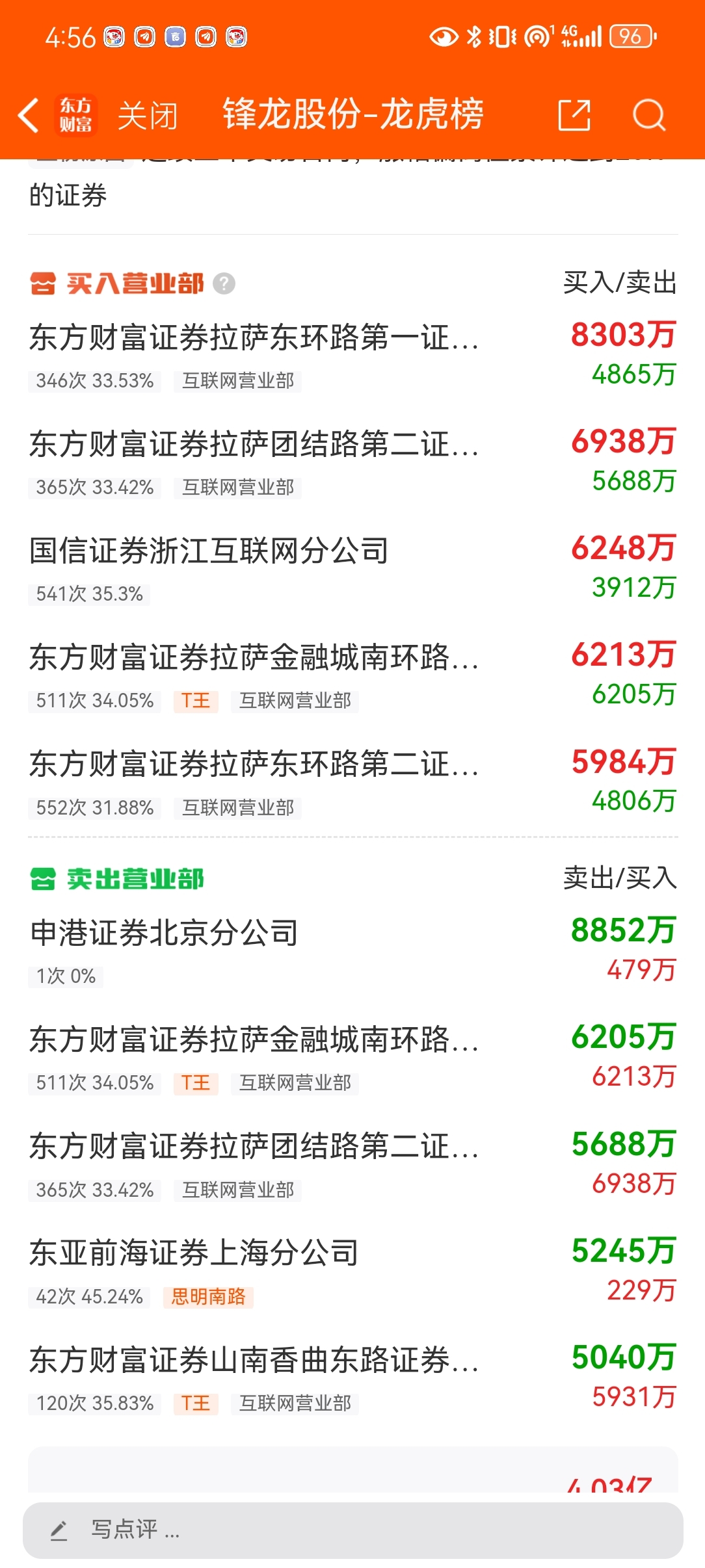 $锋龙股份(SZ002931)$ 又跑了一个游资,思明南路跑路了