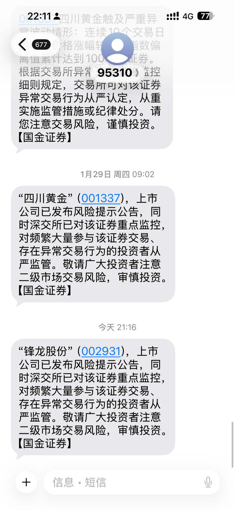 怎么办啊收短信了上次川金收到短信直接吃了三个跌停板