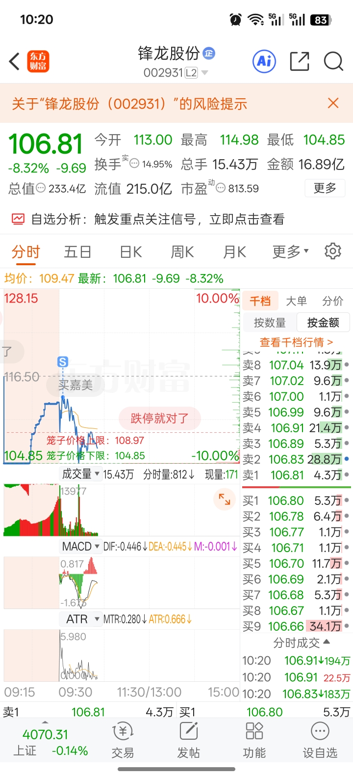 温馨提示: 1.根据《证券法》规定,禁止编造、传播虚假信息或者误导性信息,扰乱证券市场;2.用户在本社区发表的所有资料、言论等仅代表个人观点,与本网站立场无关,不对您构成任何投资建议。用户应基于自己的独立判断,自行决定证券投资并承担相应风险。《东方财富社区管理规定》