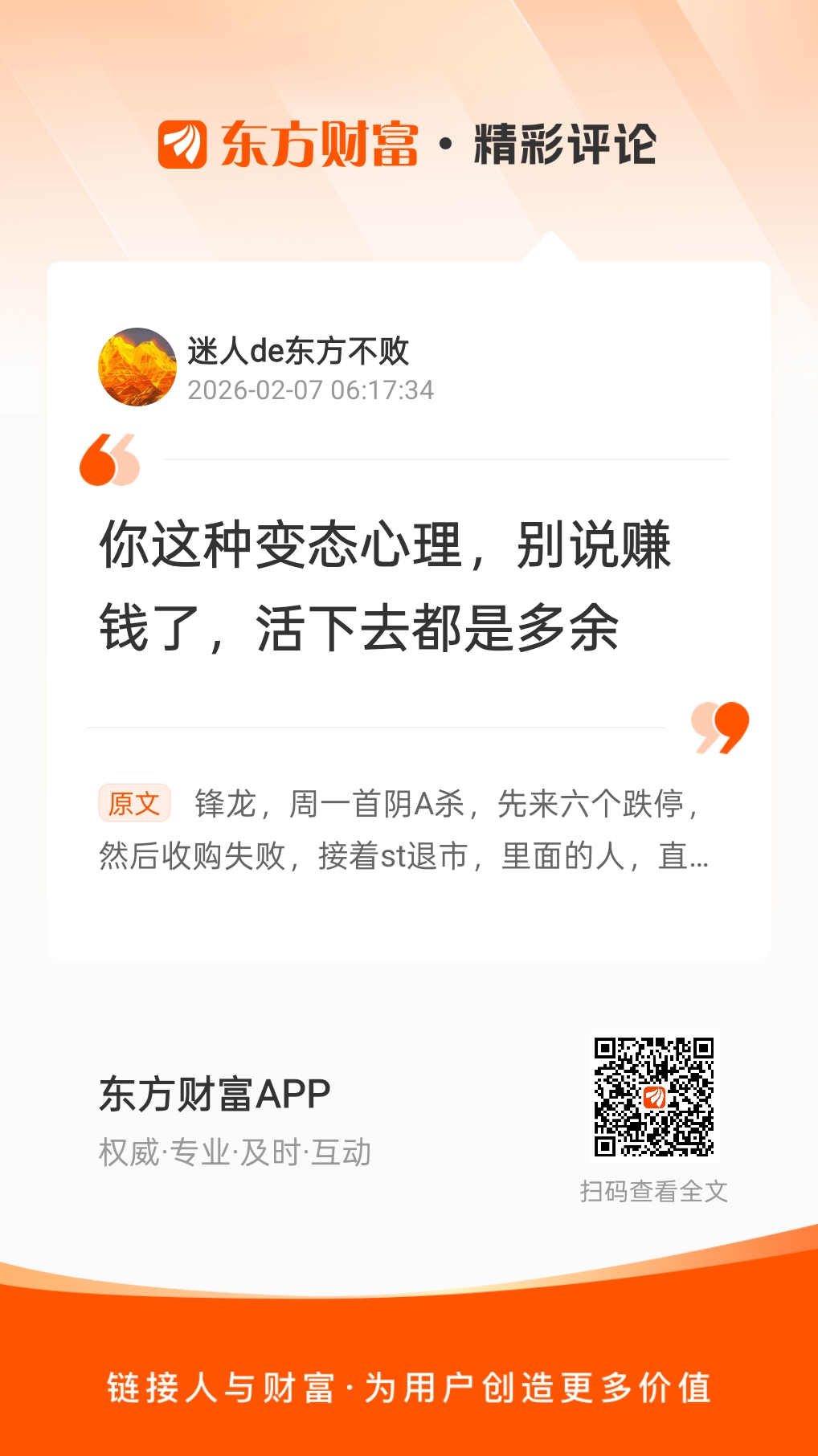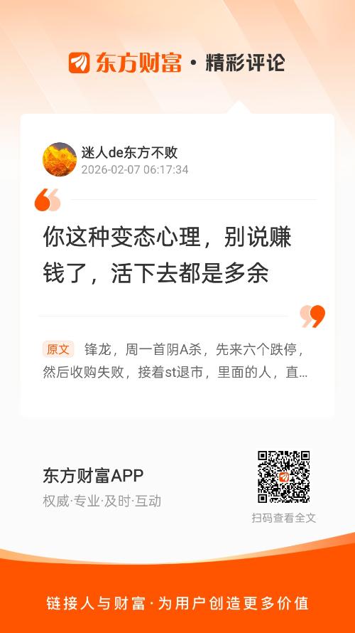 温馨提示: 1.根据《证券法》规定,禁止编造、传播虚假信息或者误导性信息,扰乱证券市场;2.用户在本社区发表的所有资料、言论等仅代表个人观点,与本网站立场无关,不对您构成任何投资建议。用户应基于自己的独立判断,自行决定证券投资并承担相应风险。《东方财富社区管理规定》