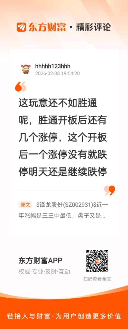 温馨提示: 1.根据《证券法》规定,禁止编造、传播虚假信息或者误导性信息,扰乱证券市场;2.用户在本社区发表的所有资料、言论等仅代表个人观点,与本网站立场无关,不对您构成任何投资建议。用户应基于自己的独立判断,自行决定证券投资并承担相应风险。《东方财富社区管理规定》