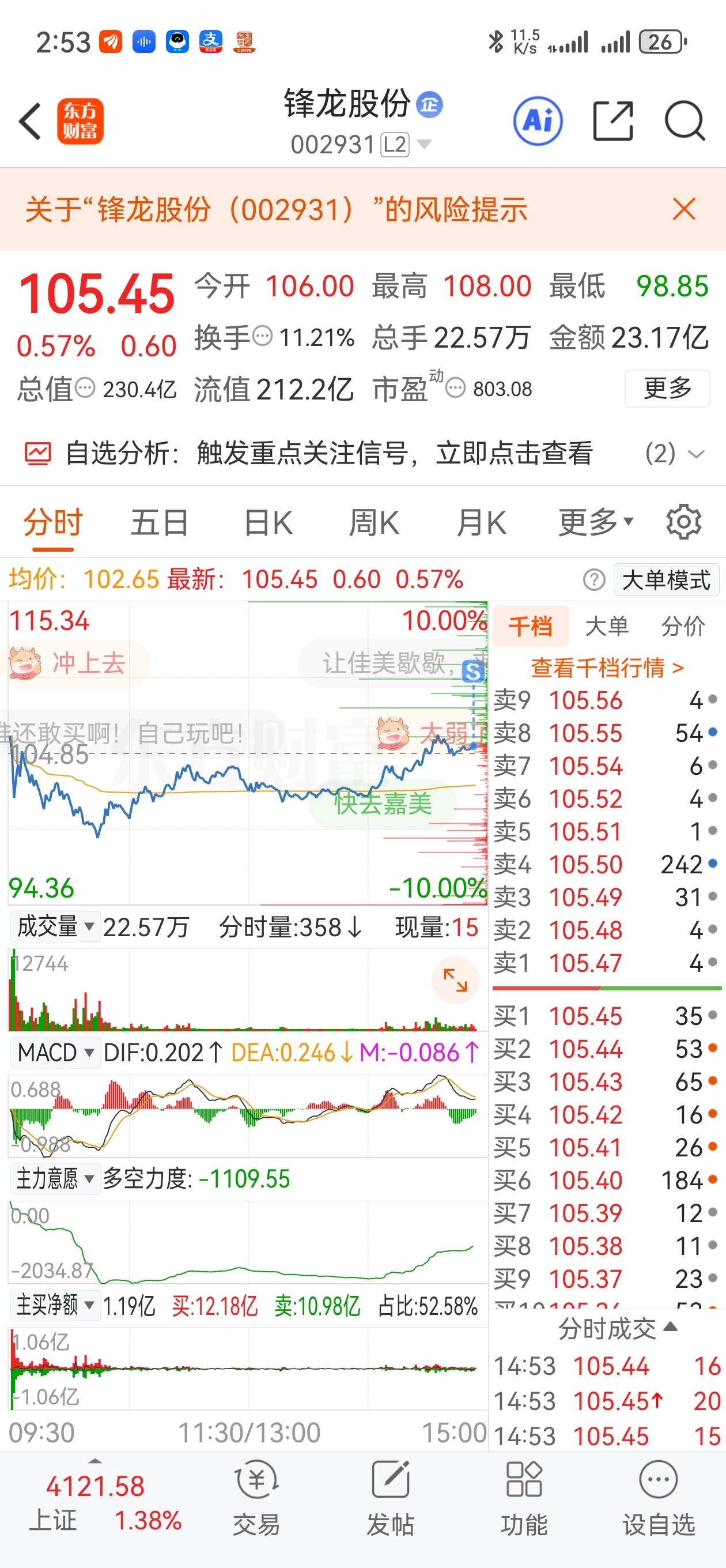 $锋龙股份(SZ002931)$ 我卖出了你可以涨了 每次都是卖出就大涨 买进就不动