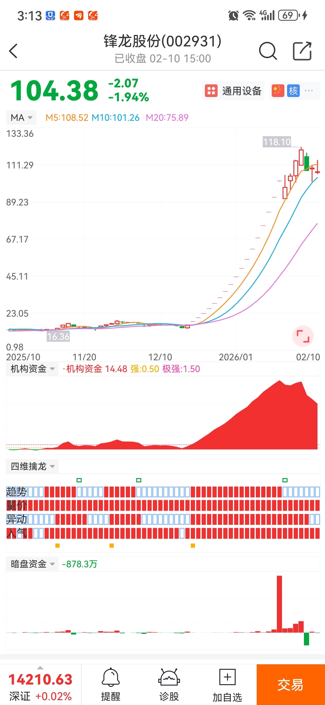 $锋龙股份(SZ002931)$ 每天给上车的机会,其实就是高位横盘,慢慢派发筹码出货计划中。横个几天,底部筹码就测底出完,留下最后接盘侠