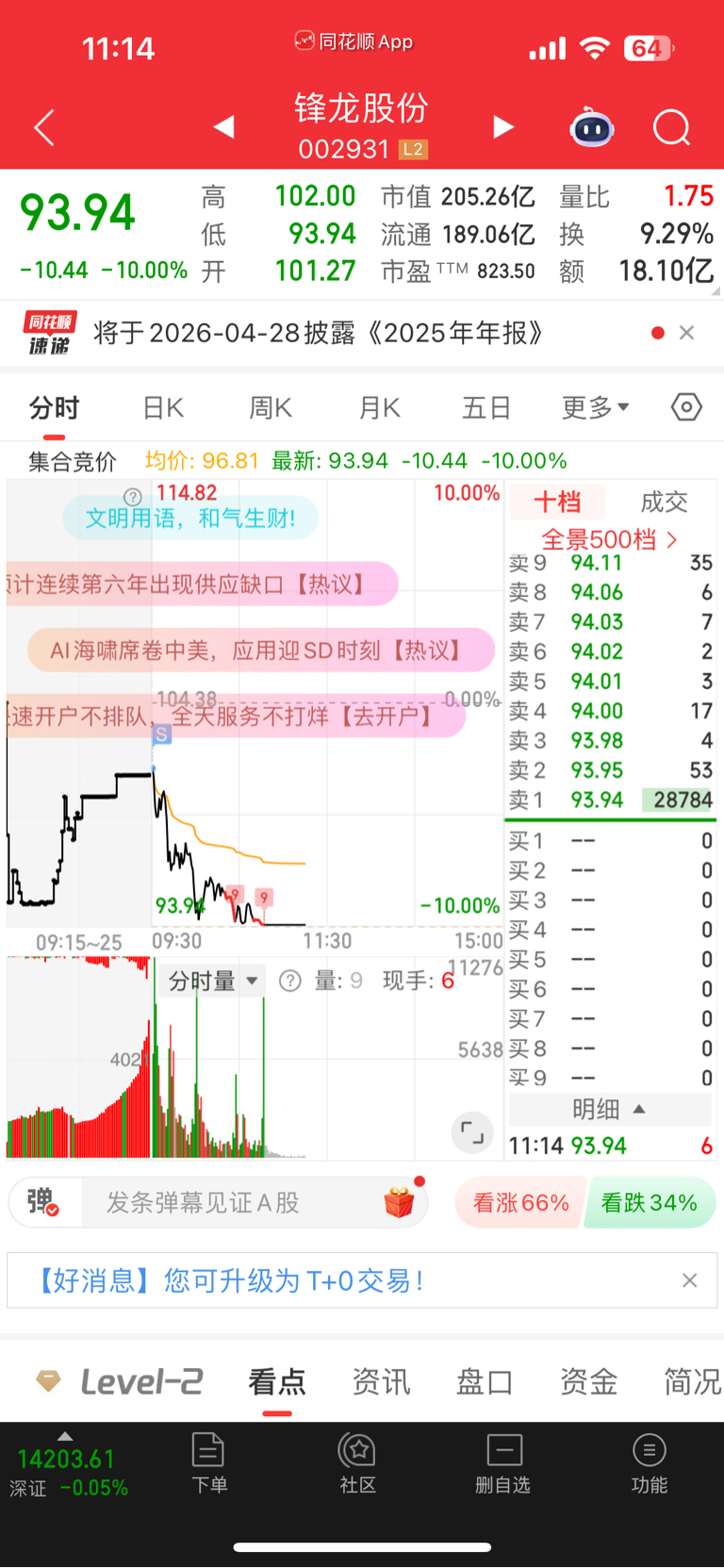 $锋龙股份(SZ002931)$ 还好开盘就卖了 垃圾庄