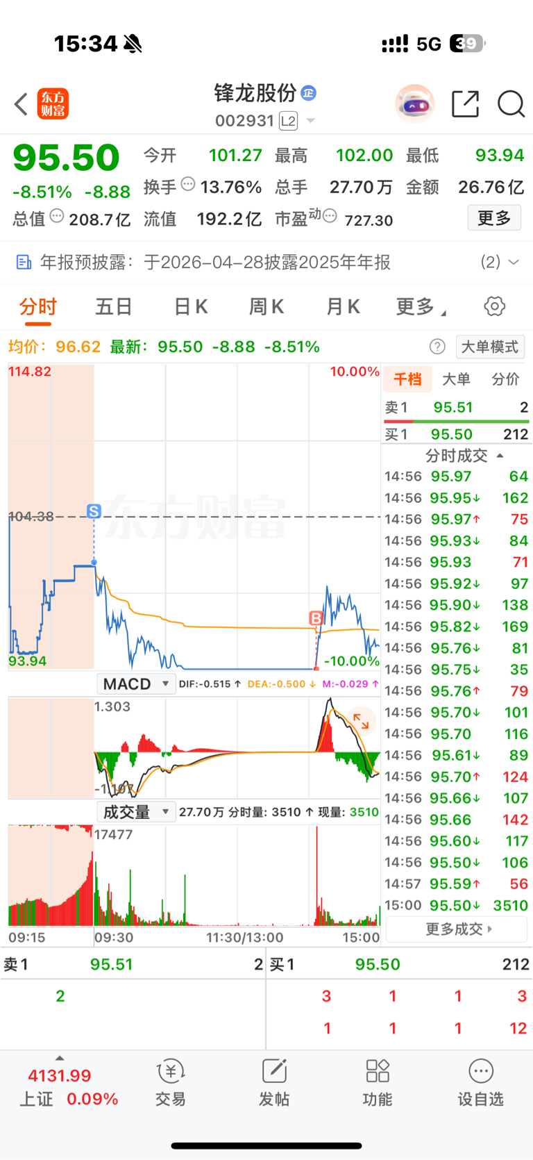 $锋龙股份(SZ002931)$ 今日做了个大t,小亏无伤大雅