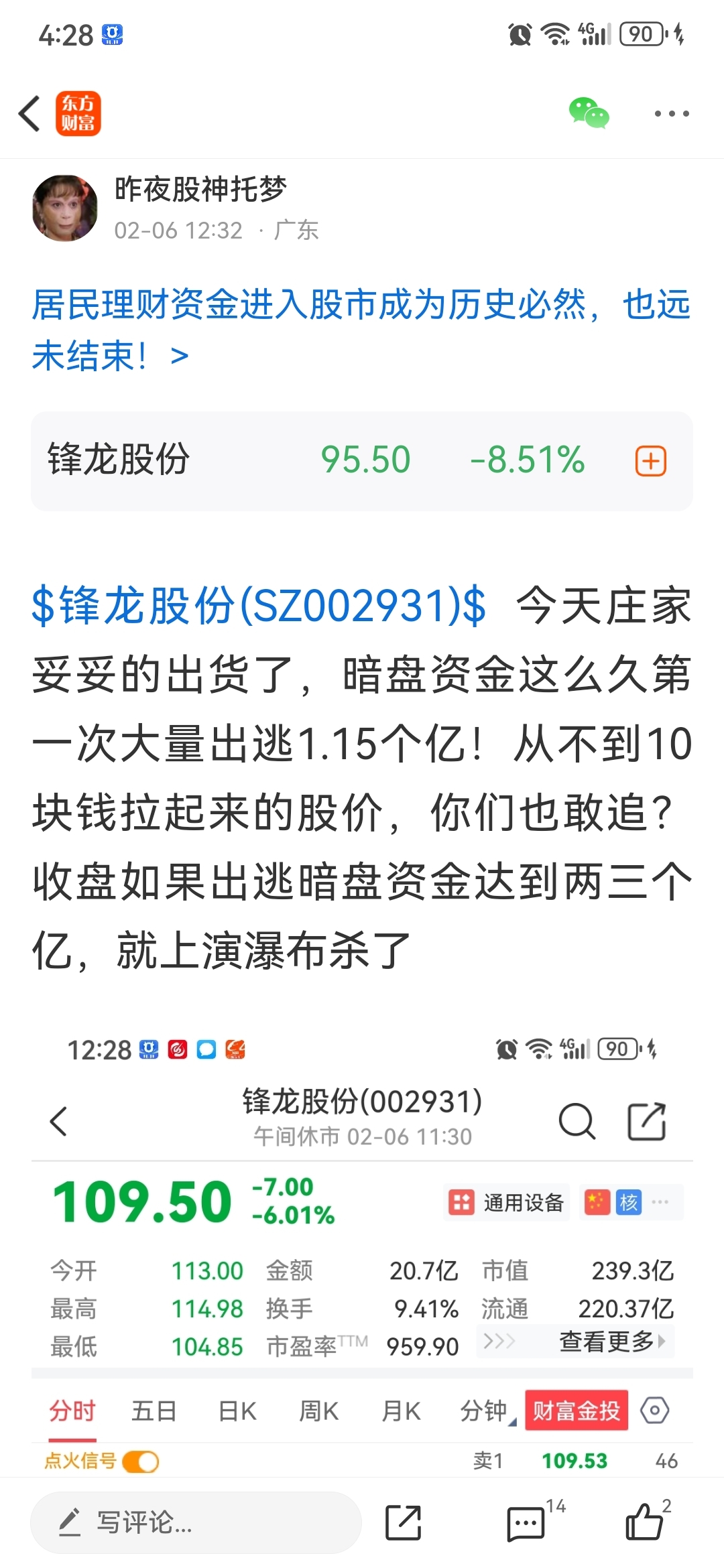 $锋龙股份(SZ002931)$ 从上周五就开始看空了,真的不是吓唬各位