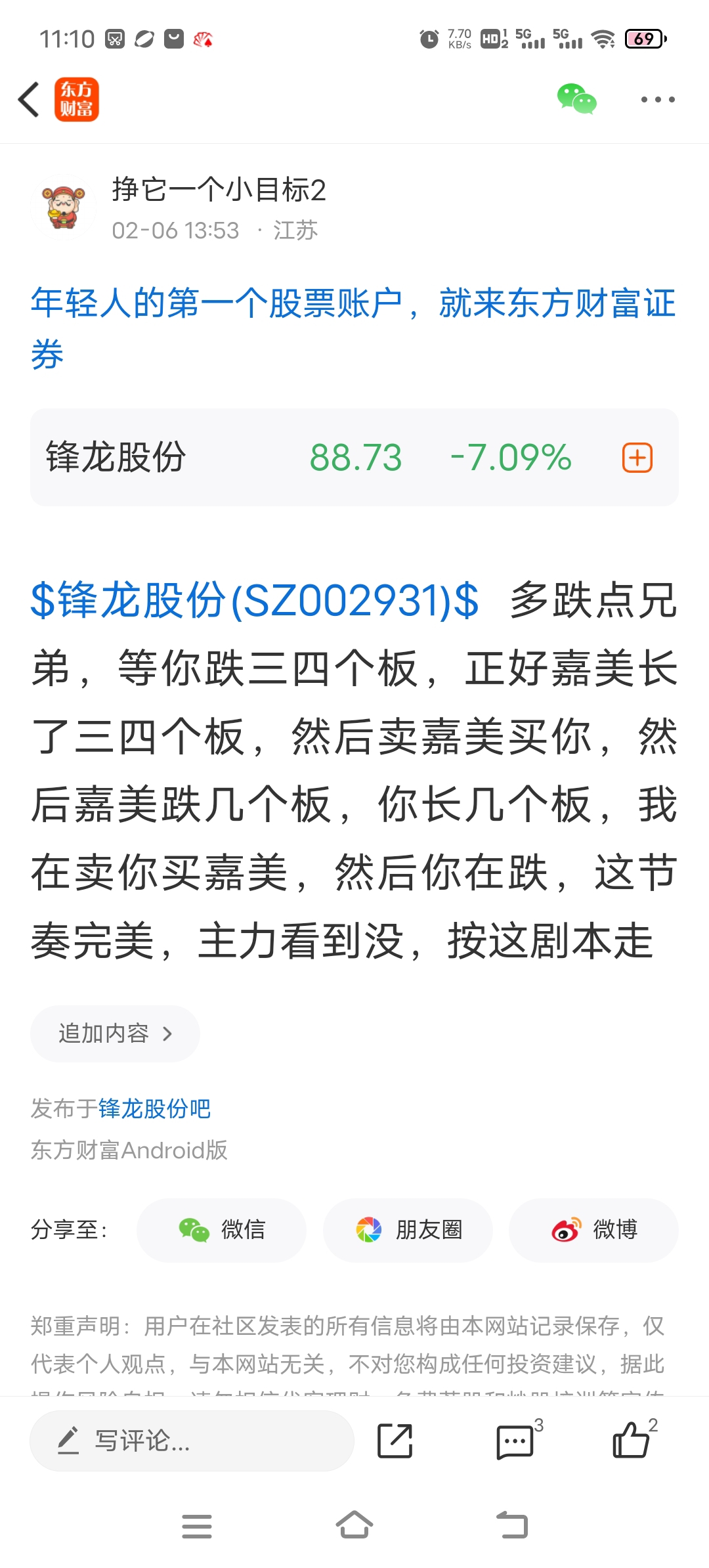 温馨提示: 1.根据《证券法》规定,禁止编造、传播虚假信息或者误导性信息,扰乱证券市场;2.用户在本社区发表的所有资料、言论等仅代表个人观点,与本网站立场无关,不对您构成任何投资建议。用户应基于自己的独立判断,自行决定证券投资并承担相应风险。《东方财富社区管理规定》