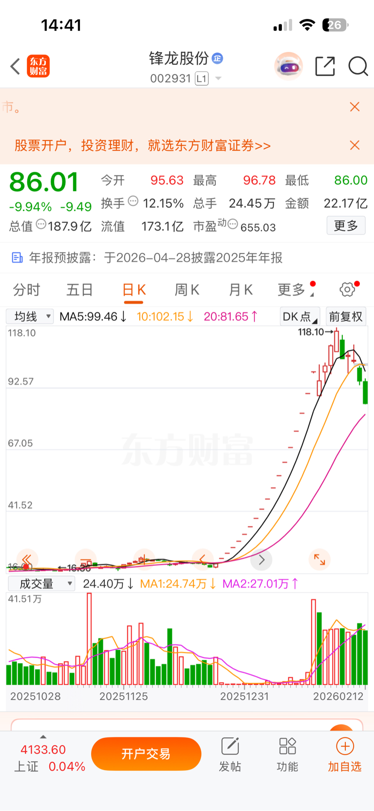 $锋龙股份(SZ002931)$ 这才哪到哪