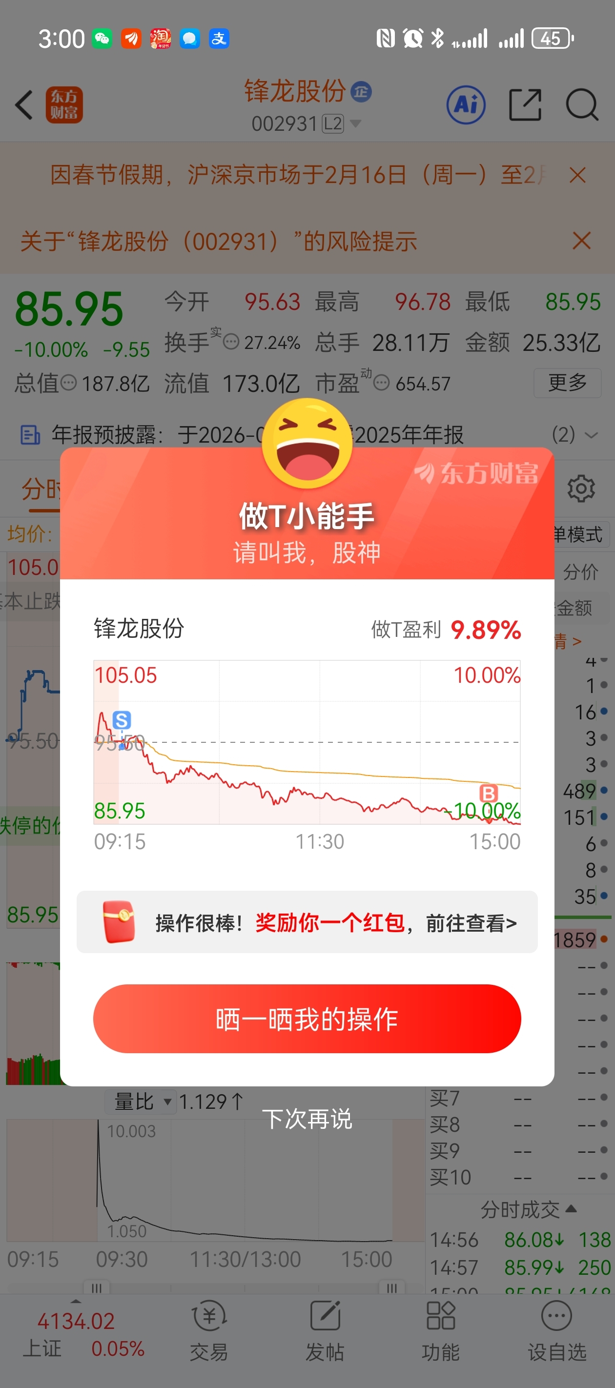 $锋龙股份(SZ002931)$ 有用吗。明天再跌停 还是逃不过