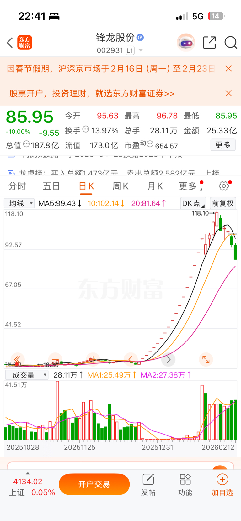 $锋龙股份(SZ002931)$ 高位爆量跌停,这个主力出货的手法太急躁了!可以说很残忍!