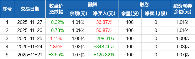 明德生物:融资净买入36.87万元,融资余额1.01亿元(11-27)
