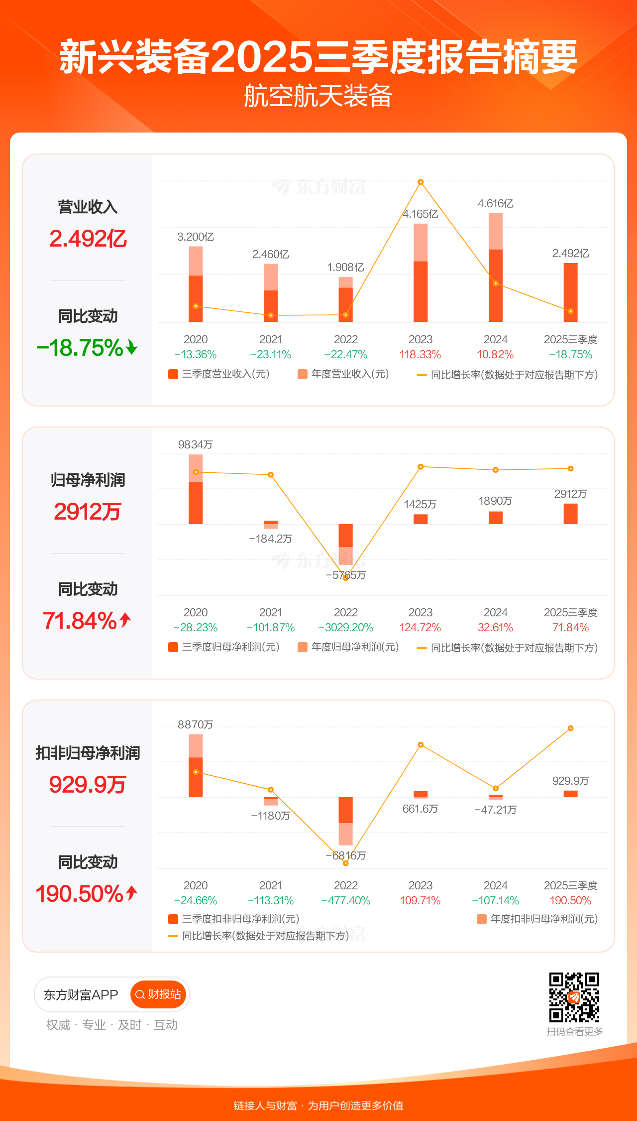 图解财报:新兴装备前三季归母净利润2911.68万元,同比增长71.84%