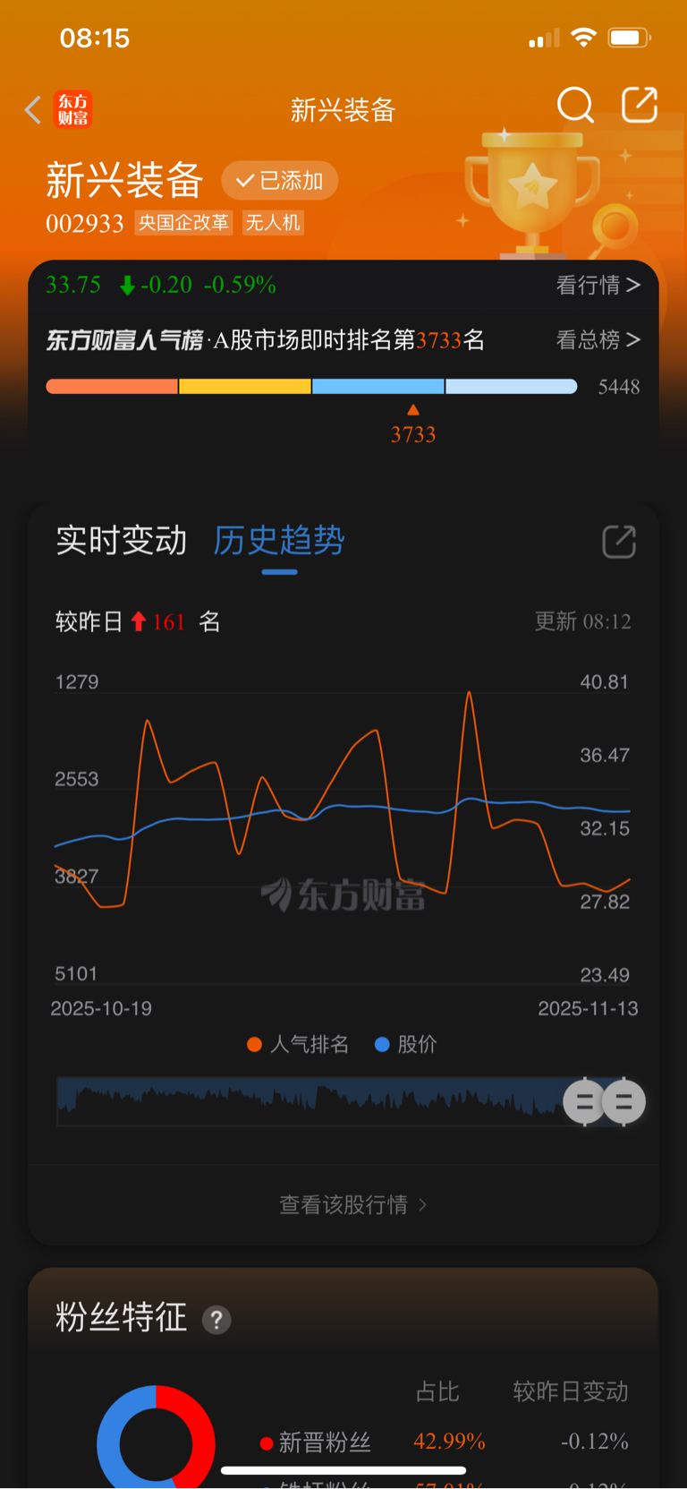 $新兴装备(SZ002933)$ 早上人气上升是因为太有性价比,盘中人气下降,是因为盘中不涨反复循环