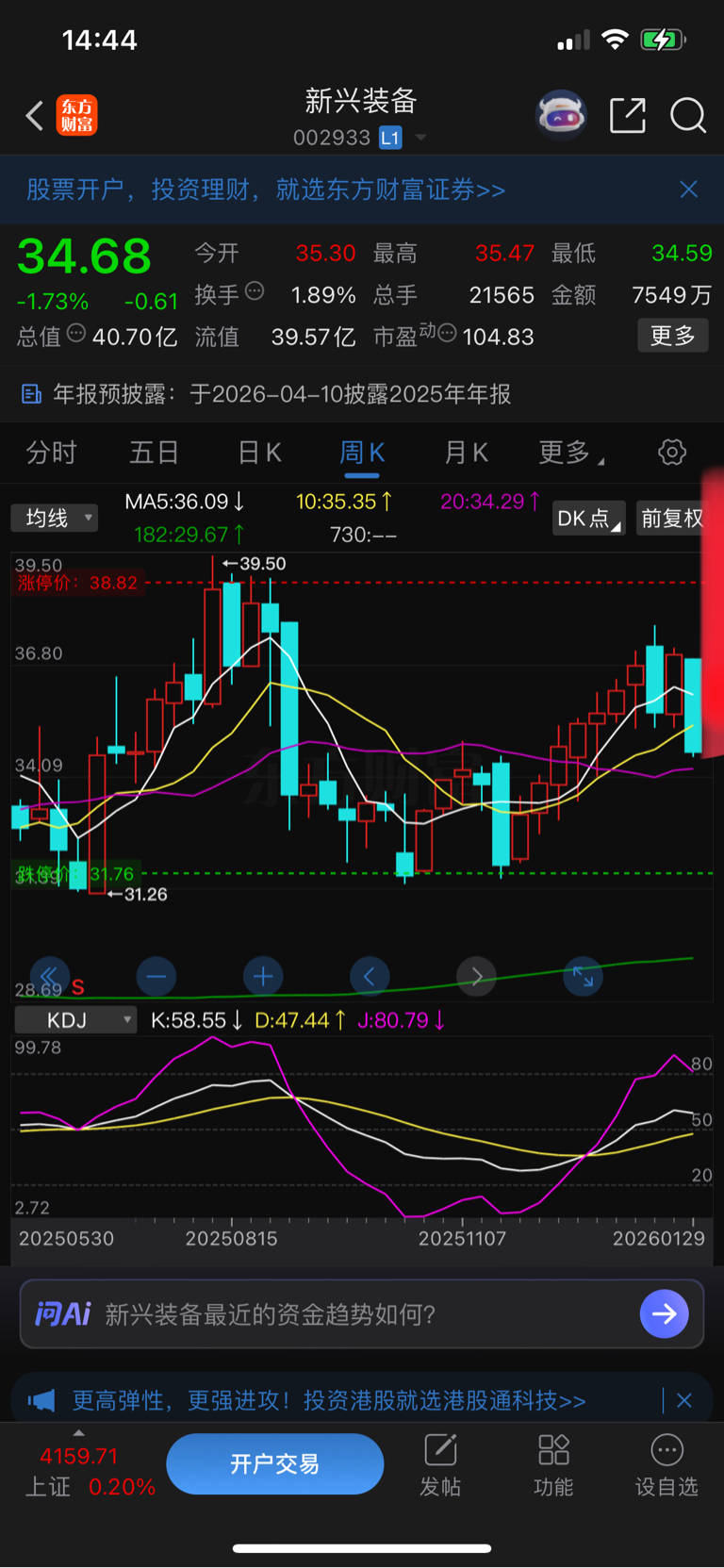 $新兴装备(SZ002933)$ 周线!!!