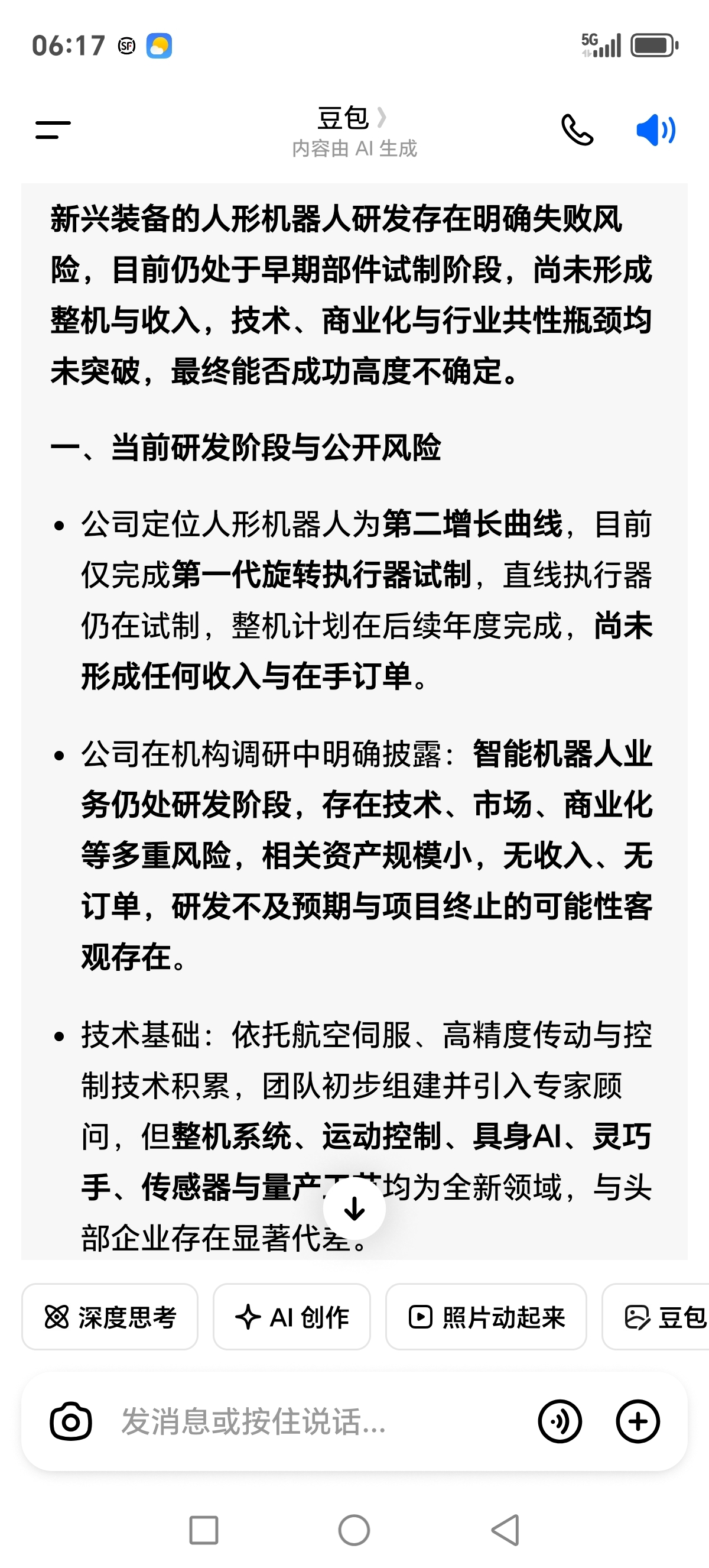 $新兴装备(SZ002933)$ 搞不明白,年报预增这么多,,股票价格竟然没有反应,问豆包,长兴动力机器人会不会研发失败,豆包回答,很有可能。