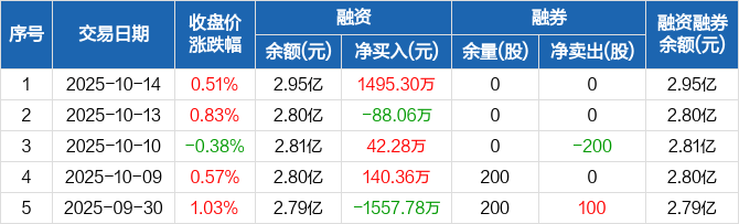 天奥电子:融资净买入1495.3万元,融资余额2.95亿元(10-14)