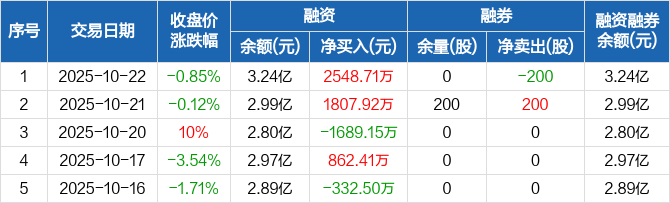 天奥电子:融资净买入2548.71万元,融资余额3.24亿元(10-22)