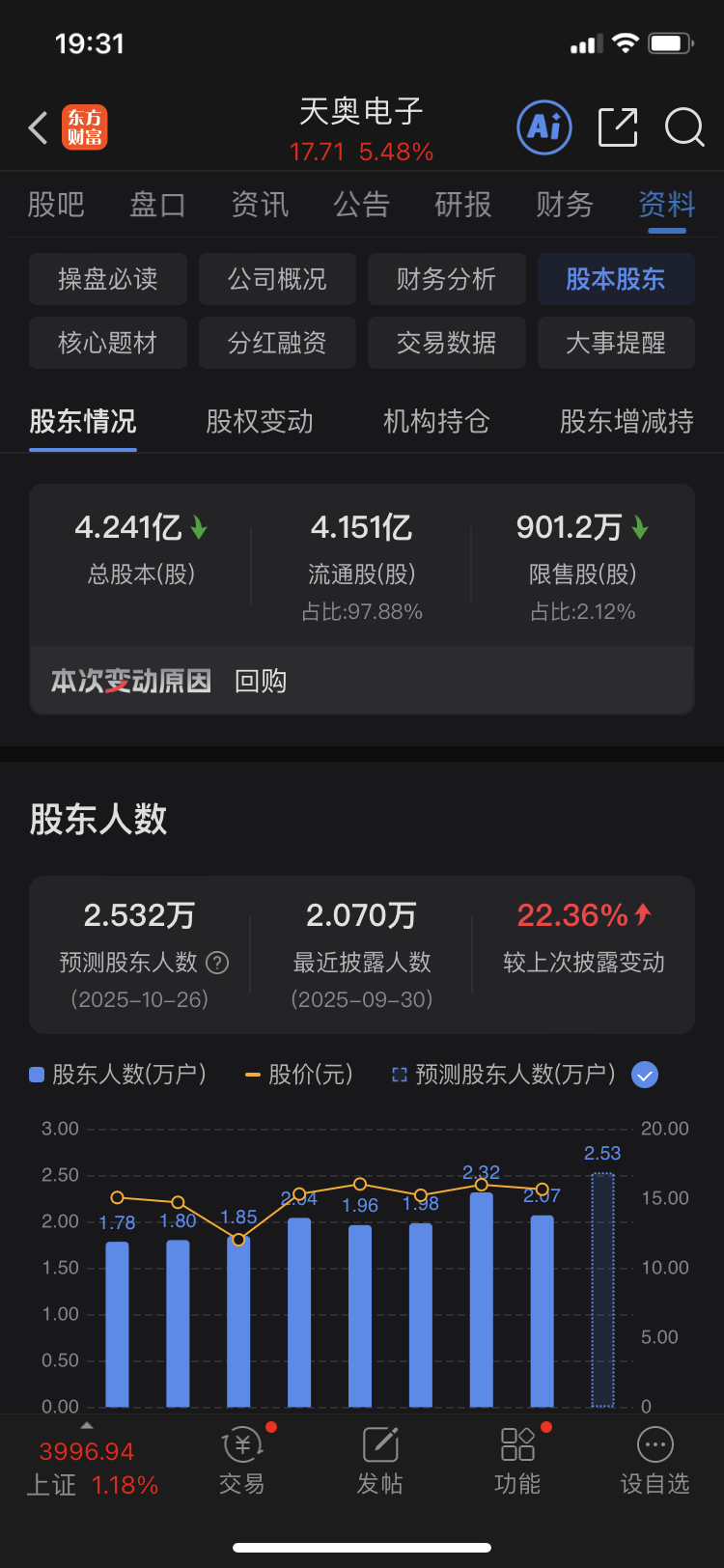 请人唱多很成功,主力大幅派发筹码,10月26日显示股东人数大幅增加增加23%