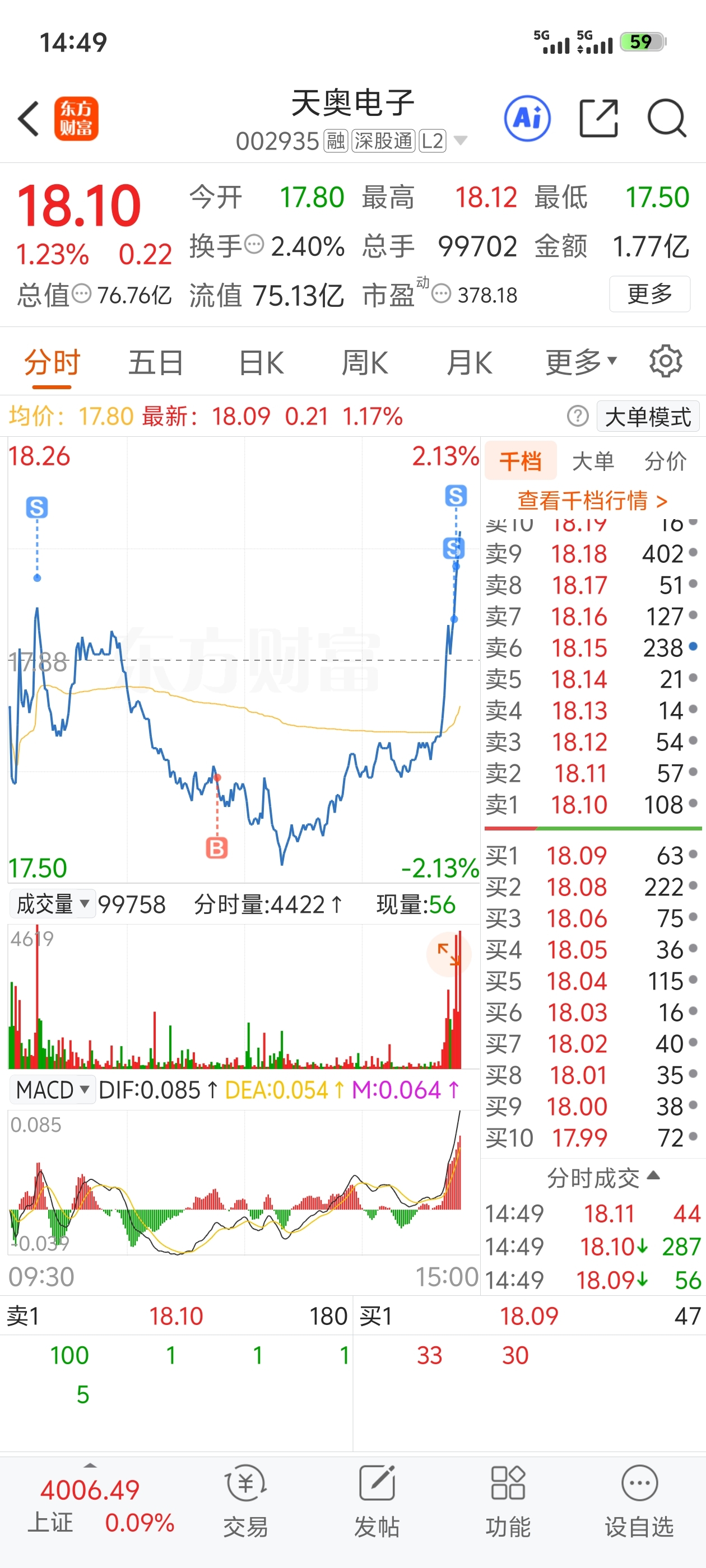 $天奥电子(SZ002935)$ 操盘手,你是我所有持股中最折磨我的人