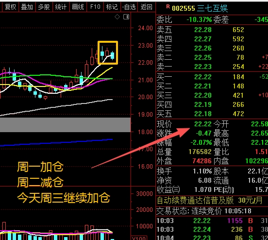 昨天没有加仓今天早盘加上了今天三七互娱绿盘震荡继续加仓