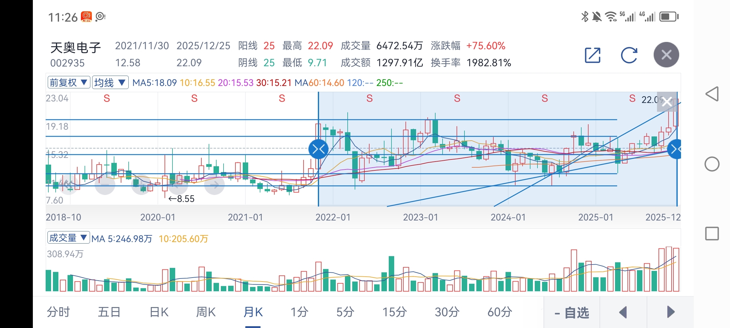 长达4年的振荡平台,突破后,理论价位应在26~30之间。拭目以待。