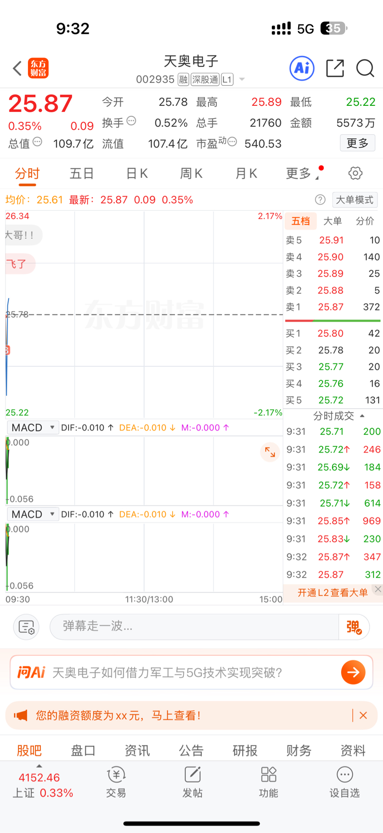 $天奥电子(SZ002935)$ 今天来的新同事,开盘梭哈的,这票节奏怎么样啊,请赐教。