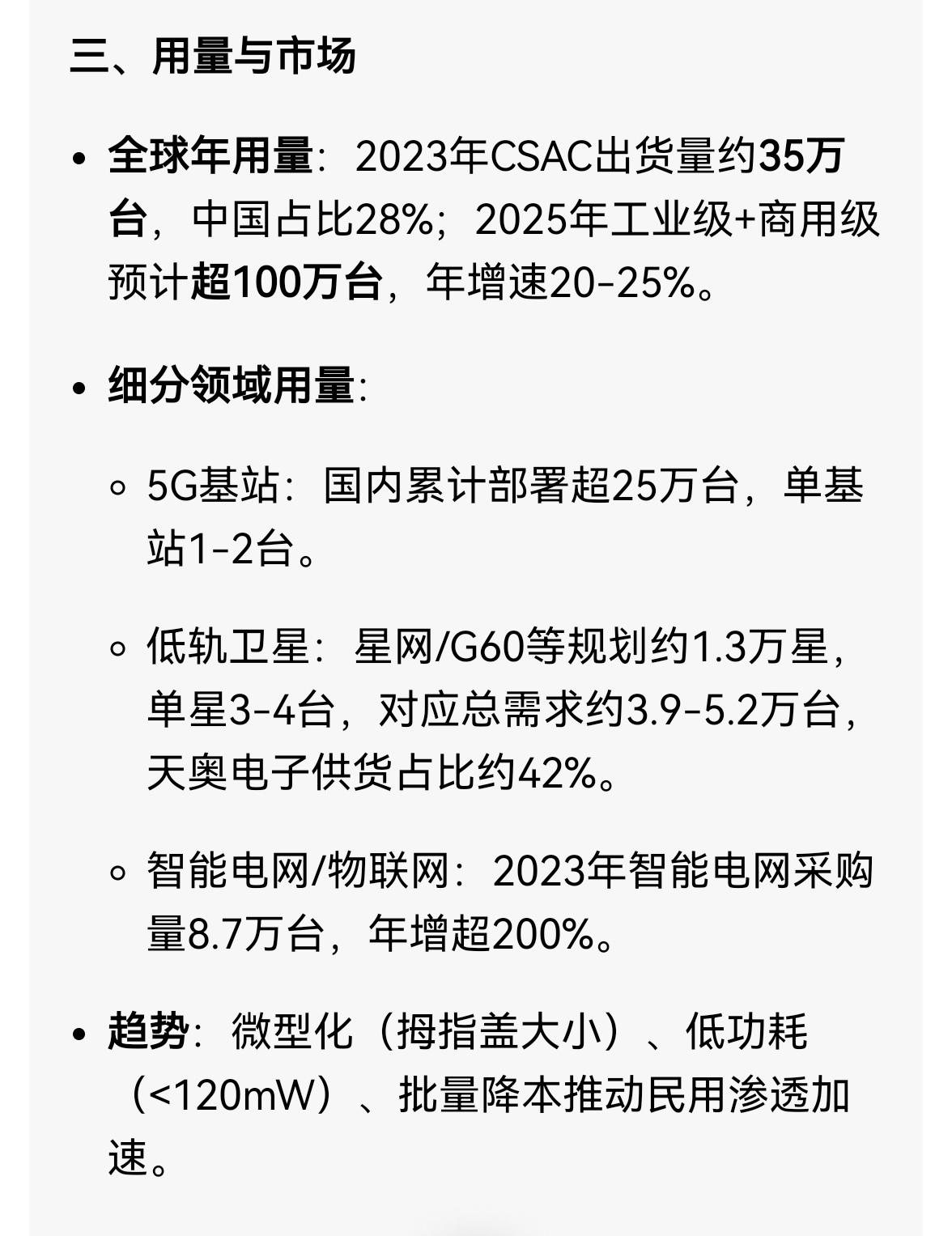 $天奥电子(SZ002935)$ 芯片原子钟用量和用途很大。