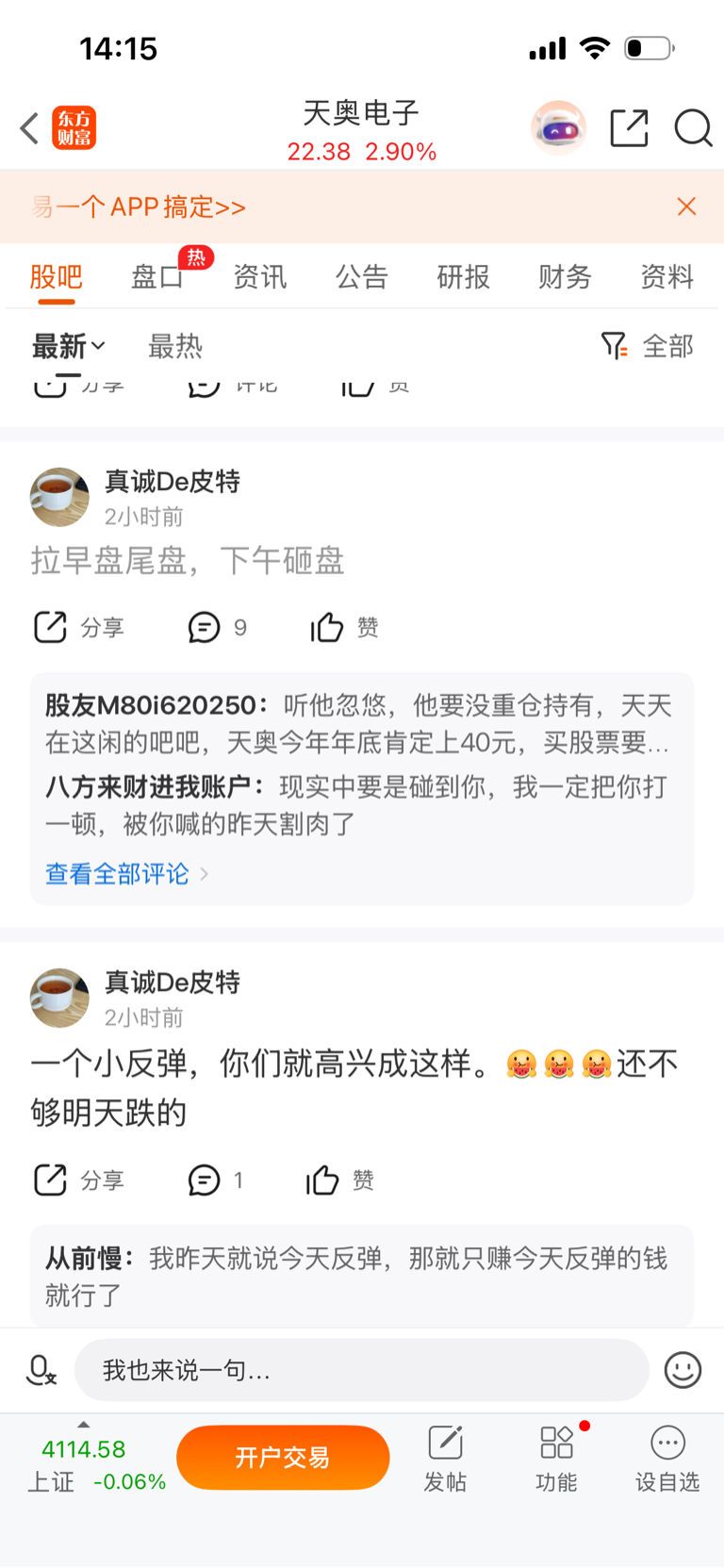 温馨提示: 1.根据《证券法》规定,禁止编造、传播虚假信息或者误导性信息,扰乱证券市场;2.用户在本社区发表的所有资料、言论等仅代表个人观点,与本网站立场无关,不对您构成任何投资建议。用户应基于自己的独立判断,自行决定证券投资并承担相应风险。《东方财富社区管理规定》