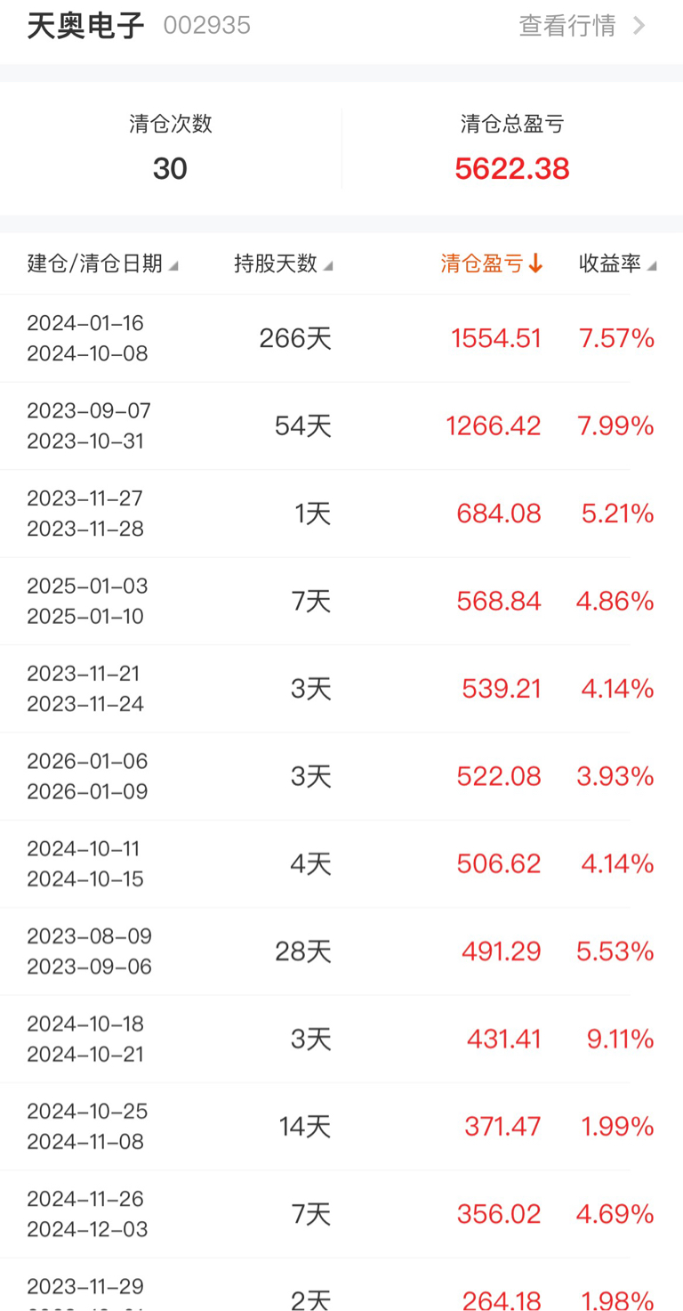 $天奥电子(SZ002935)$ 跟了你这么久,只要赚的大过于亏的,没什么心里不舒服了…