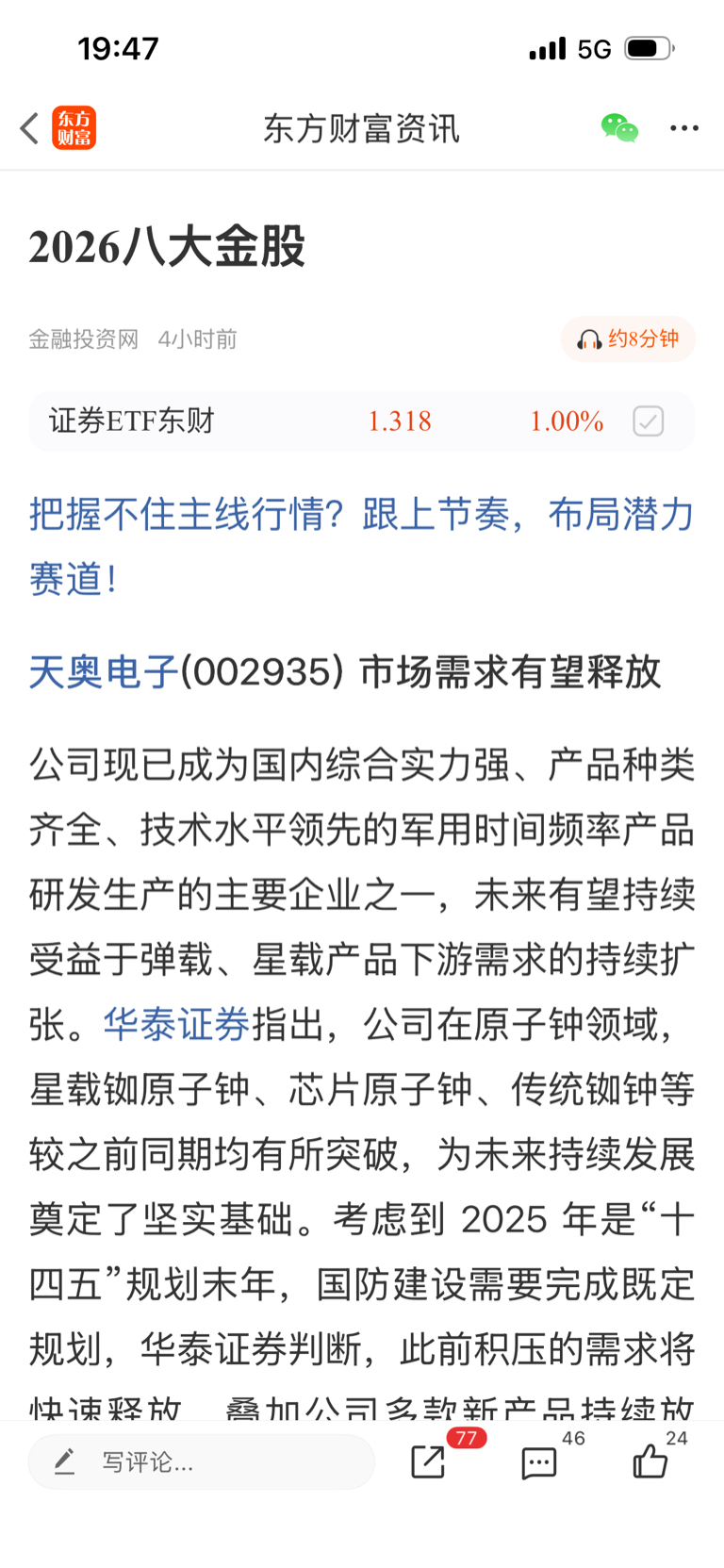 $天奥电子(SZ002935)$ 昨天出的八大金股的小作文,今天高开砸盘。