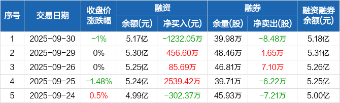 郑州银行:融资净偿还1232.05万元,融资余额5.17亿元(09-30)