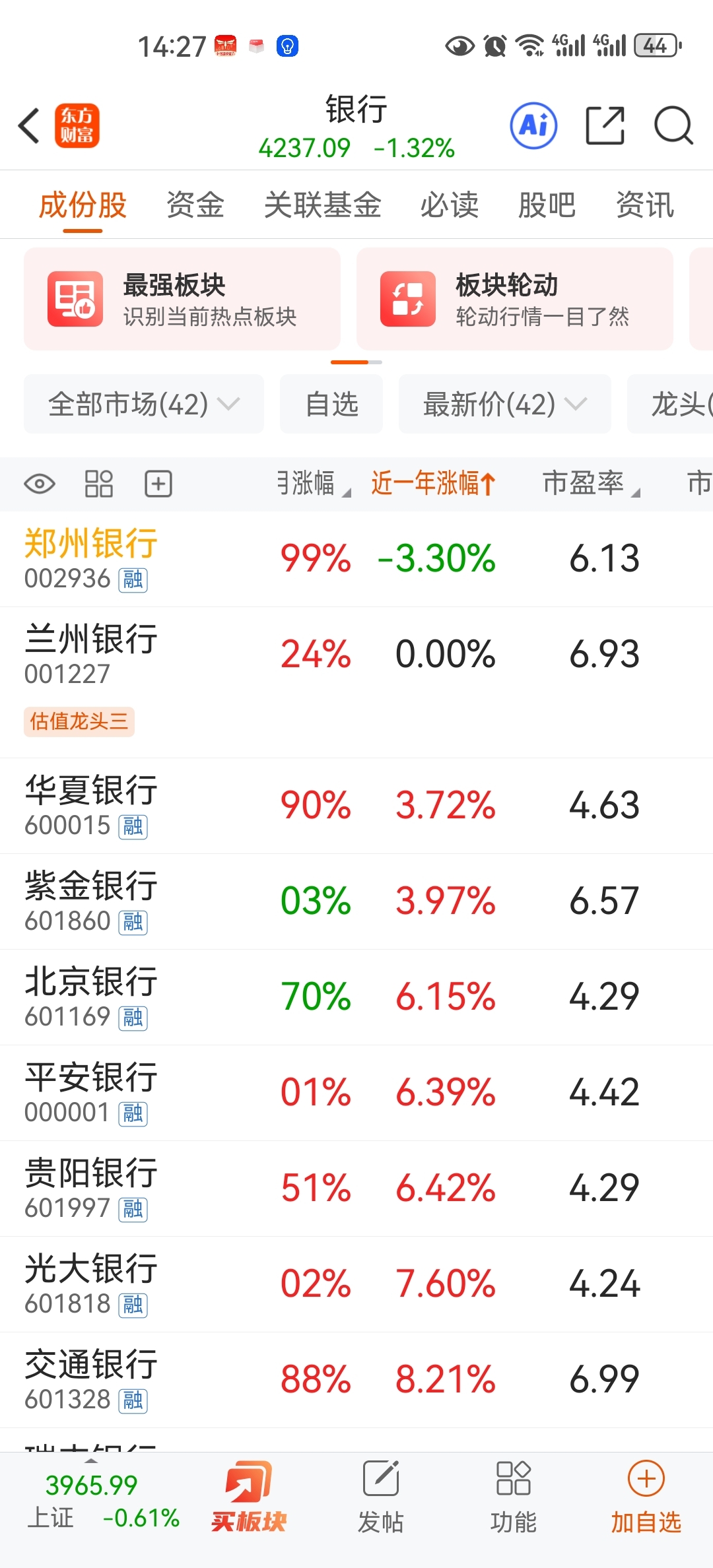 $郑州银行(SZ002936)$ 恭喜大家 全板块最低的