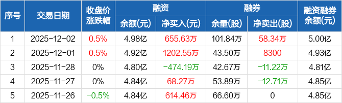 郑州银行:融资净买入655.63万元,融资余额4.98亿元(12-02)