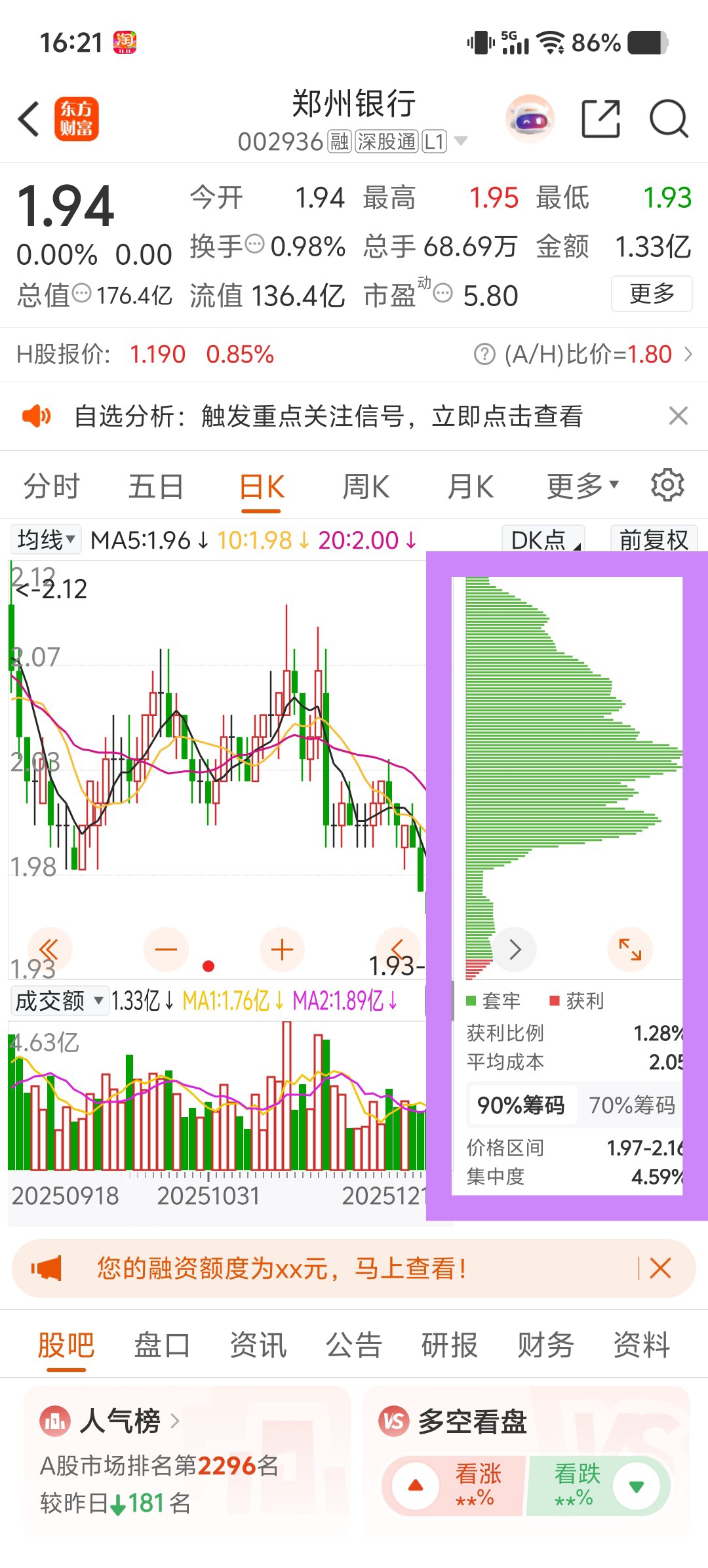 $郑州银行(SZ002936)$ 今天怎么不跌了?跌不动了吧?主力是不是也套进去了?