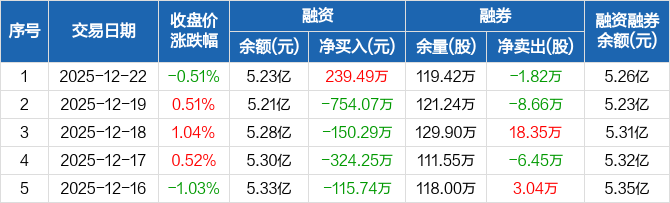 郑州银行:融资净买入239.49万元,融资余额5.23亿元(12-22)