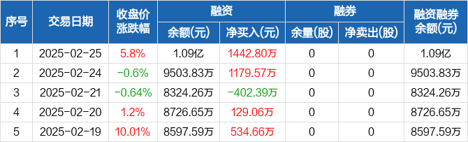 兴瑞科技:融资净买入1442.8万元,融资余额1.09亿元(02-25)