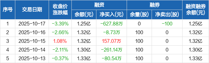 兴瑞科技:融资净偿还627.88万元,融资余额1.25亿元(10-17)