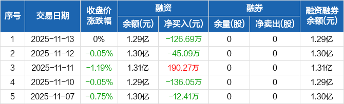 兴瑞科技:融资净偿还126.69万元,融资余额1.29亿元(11-13)