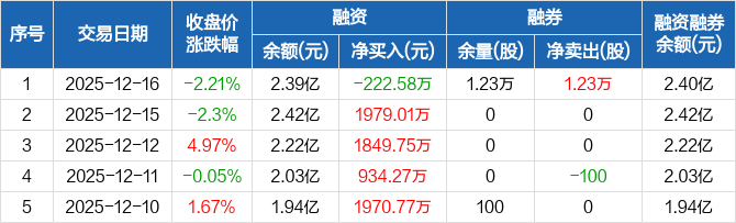 兴瑞科技:融资净偿还222.58万元,融资余额2.39亿元(12-16)